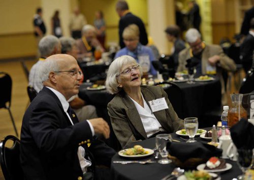 Above, Virginia Visser and Dave Eldridge enjoy the Class of 1963 Reunion luncheon during Homecoming 2013 at Emporia State University.